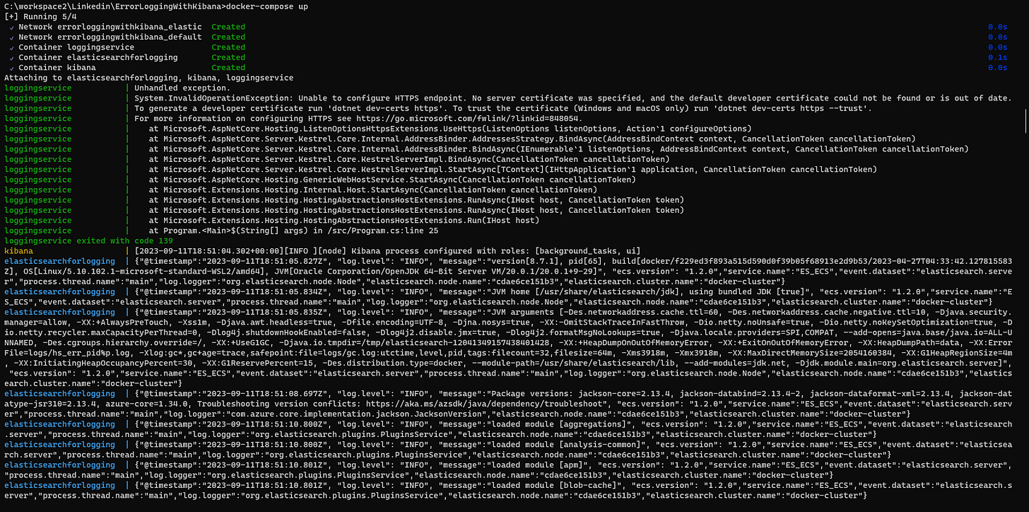 Before starting the Serilog code in VisualStudio We need to spin up the container of Kibana and ElasticSearch