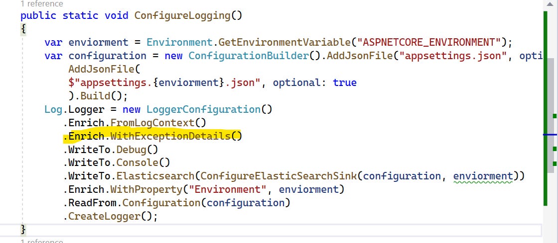 dotnet add package Serilog.Exceptions --version 8.4.0Now change in SerilogHelper class and add Enrich.WithExceptionDeatil()