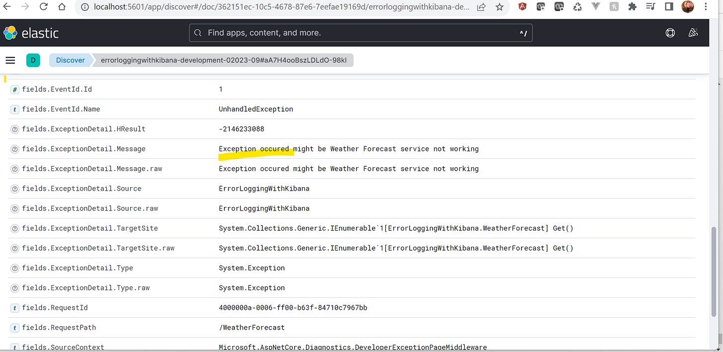You should now log the new error, and in Kibana, you will observe more structured log details.